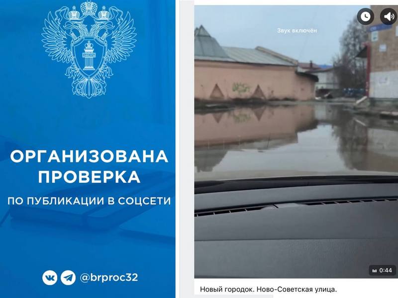 Прокуратура проверяет информацию о подтоплении улицы Ново-Советской в Брянске. Информация об этом появилась в социальных сетях.