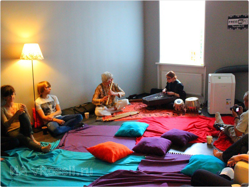 Концерт начался в 19:00. В это время на бульваре Гагарина гремел фестиваль уличной культуры. Но в зале "Некафе" царили тишина и покой. Расположившиеся на мягких коврах и подушках гости, наслаждались волшебными звуками флейты, на которой играл Сергей Емельянов. А Анна Пашкевич, игравшая на таблах (небольшие барабаны), прекрасно ему аккомпанировала. В этот вечер музыканты исполнили несколько классических индийских раг, а также композиции других стилей и направлений. "Чувствую, как прикоснулся к другой культуре. Спасибо музыкантам за их творчество!" - делится впечатлениям от концерта зритель Евгений.