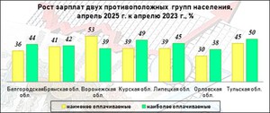 В регионах присутствия ИА vRossii.ru процентный рост заработной платы наименее оплачиваемой прослойки обогнал увеличение трудового дохода у наиболее оплачиваемых сотрудников только в Воронежской области.