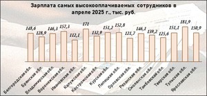 Средний трудовой доход наиболее оплачиваемых работников в половине регионов перевалил за 150 тыс. руб. В Белгородской области максимальная заработная плата вплотную подобралась к этой отметке.