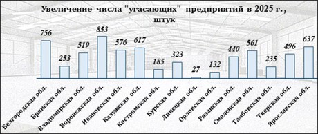 Увеличивается и количество "угасающих" предприятий. Уточним, что такими считаются компании, которые два года подряд сокращают штат наемных сотрудников в среднем на 15 и более процентов. За 2025 год число подобных хозяйствующих субъектов выросло на 39,3 тыс.