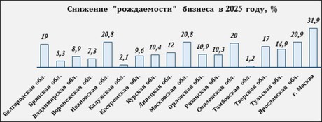 По сравнению с 2024 годом, количество закрытых бизнесов выросло на 25,3 тыс. единиц. При этом во всем ЦФО сложилась очень необычная ситуация. Лишь в 7 из 18 регионов выросло число ликвидированных компаний. Соответственно во всех остальных субъектах количество коммерческих организаций, прекративших свою деятельность, наоборот снизилось.