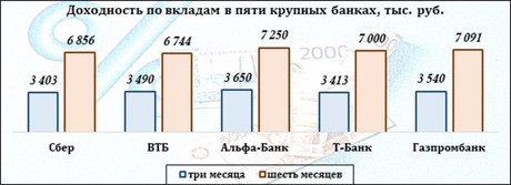 Таким образом, за три месяца доходность составит 3 403 рубля, за полгода – 6 856 рублей.