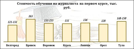 В столице Черноземья, Воронеже, получить журналистское образование можно в ВГУ и  ВГТУ. Факультет журналистики в ВГУ по программам бакалавриата и специалитета предлагает 14 бесплатных мест (4 – журналистика, 10 – военная журналистика) и 135 мест на договорной основе. Из этих 135 мест 50 квот выделено по направлению "Медиакоммуникации", 44 квоты – "Телевидение", 21 квота – "Журналистика" и 20 квот – "Военная журналистика". В ВГТУ в распоряжении абитуриентов 25 платных мест на очную форму обучения по профилю "Медиатехнологии в производственной сфере".