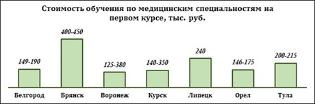 Отобрали высшие учебные заведения в городах присутствия ИА vRossii.ru. Форма получения высшего образования – специалитет (пяти- или шестилетняя углубленная профессиональная подготовка). Направления специальных учебных дисциплин, которые нами рассматривались, имеют следующие коды – 31.05.01 "Лечебное дело", 31.05.02 "Педиатрия", 31.05.03 "Стоматология", 32.05.01 "Медико-профилактическое дело". Мы включили в материал и сведения по направлению 33.05.01 "Фармация". Выпустившиеся специалисты не считаются врачами, тем не менее их работа близка к медицине.