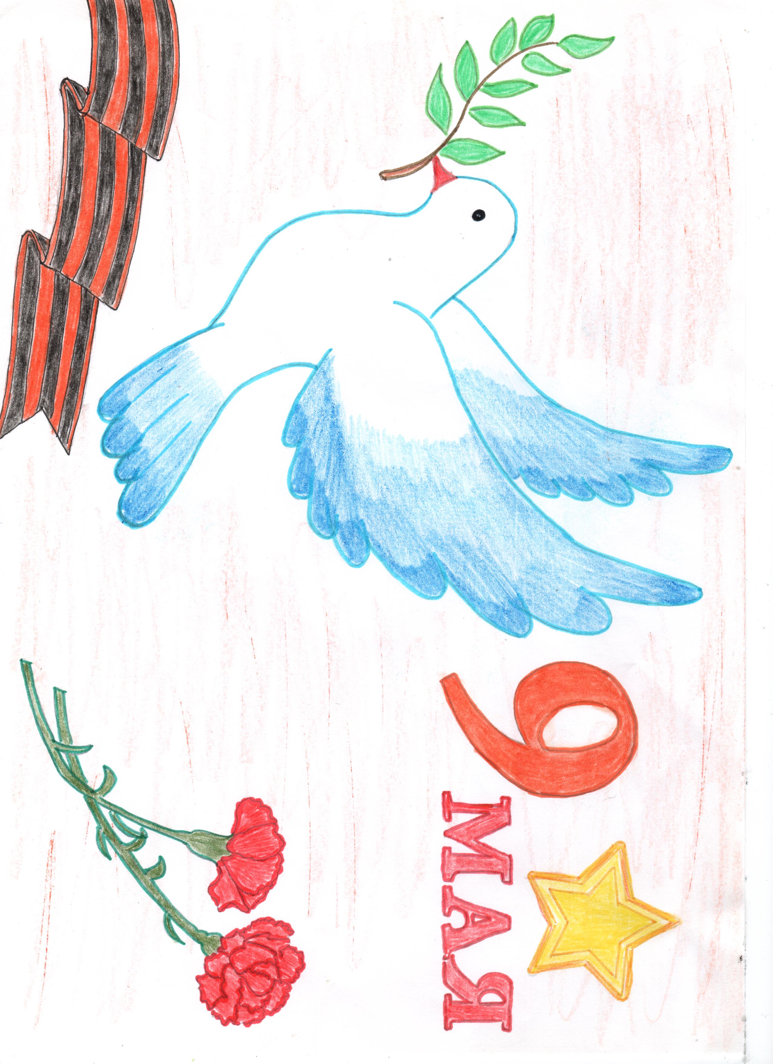 Описание: Рисунок передает образ праздника, наполненного одновременно радостью и грустью, гордостью и благодарностью. Это не просто поздравление с 9 Мая, а искренний поклон перед подвигом предков и пожелание мира будущим