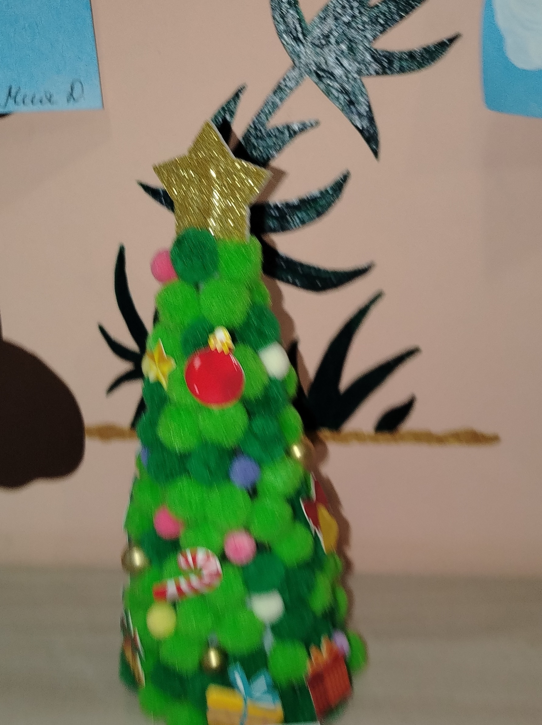 Описание: Елочка выполнена из мягких шариков из пряжи