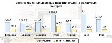 Сколько стоят самые дешевые квартиры-студии в ЦФО