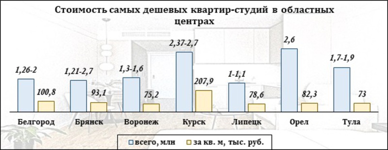 Сколько стоят самые дешевые квартиры-студии в ЦФО