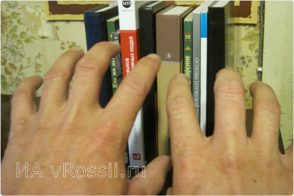 Как-то раз в читальный зал зашёл юноша в мятых джинсах и дырявой рубашке. Посетитель остановился возле стеллажей, протянул руки к книгам и стал судорожно сжимать и разжимать кулаки. Заметив на себе взгляд библиотекаря, мужчина загробным голосом сказал: ''Я знаю, что ничего нельзя трогать! Нас в дурдоме этому учат''. Постояв с вытянутыми руками возле каждой полки, посетитель вышел из библиотеки и, к счастью, больше не возвращался.