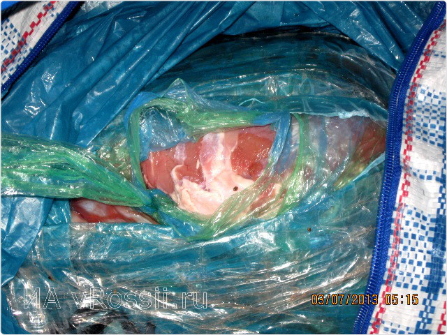Везли мясо граждане Украины в ручной клади, естественно без всяких сопроводительных документов и с нарушениями условий транспортировки.
