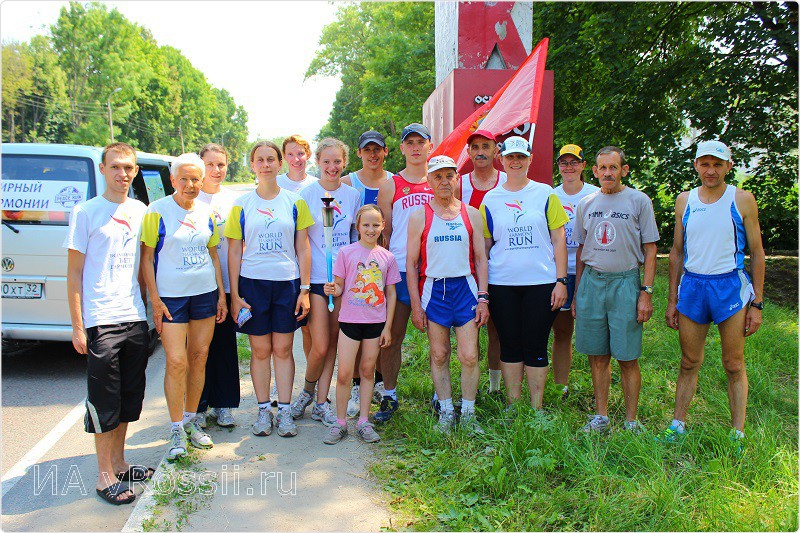 Граница Брянска... По обочине дороге движется небольшая группа людей, похожих на спортсменов-легкоатлетов. Машины, которые мчатся по автостраде, приветствуют их гудками своих сигналов. Эти люди — участники факельной эстафеты «Всемирный бег Гармонии», которая только что началась в нашем городе.
