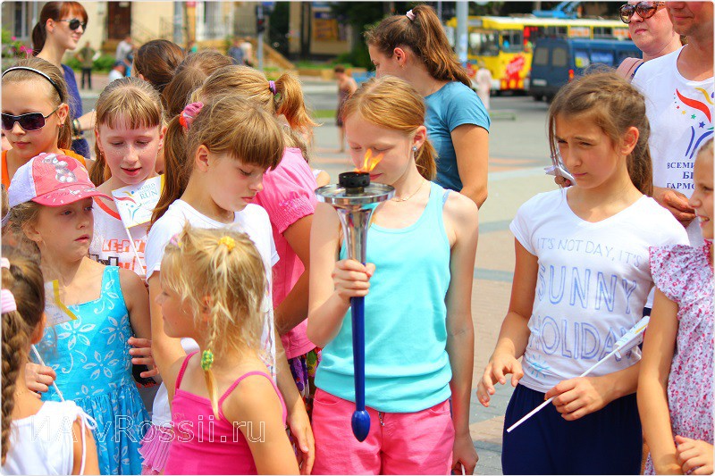 А затем началась веселая факельная эстафета. Каждый мог подержать олимпийский «огонек» и загадать желание. Особенно нравилось это делать детишкам. "Хочу, чтобы все люди на земле были здоровы!", - крепко произнёс 9-летний Семен и передал факел своим друзьями. "Первый раз бегу по вашему городу. Очень рады быть здесь и передавать факел гармонии и мечту о мире по всему миру!", - говорит участник эстафеты Алексей Лазарев из Смоленска.